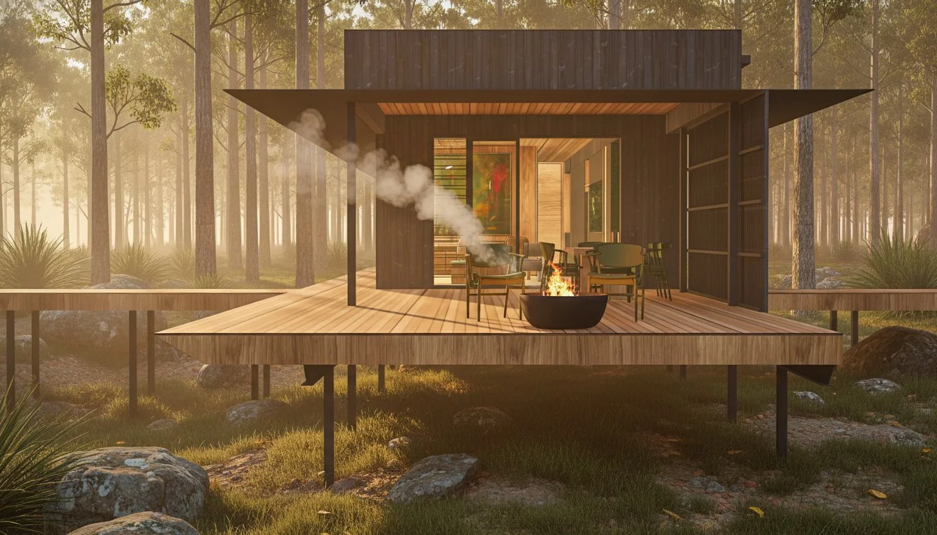 The brief called for an off-grid cabin in the woods that could potentially be suitede to several different sites, each located in the shadow of Wollumbin/Mt Warning.